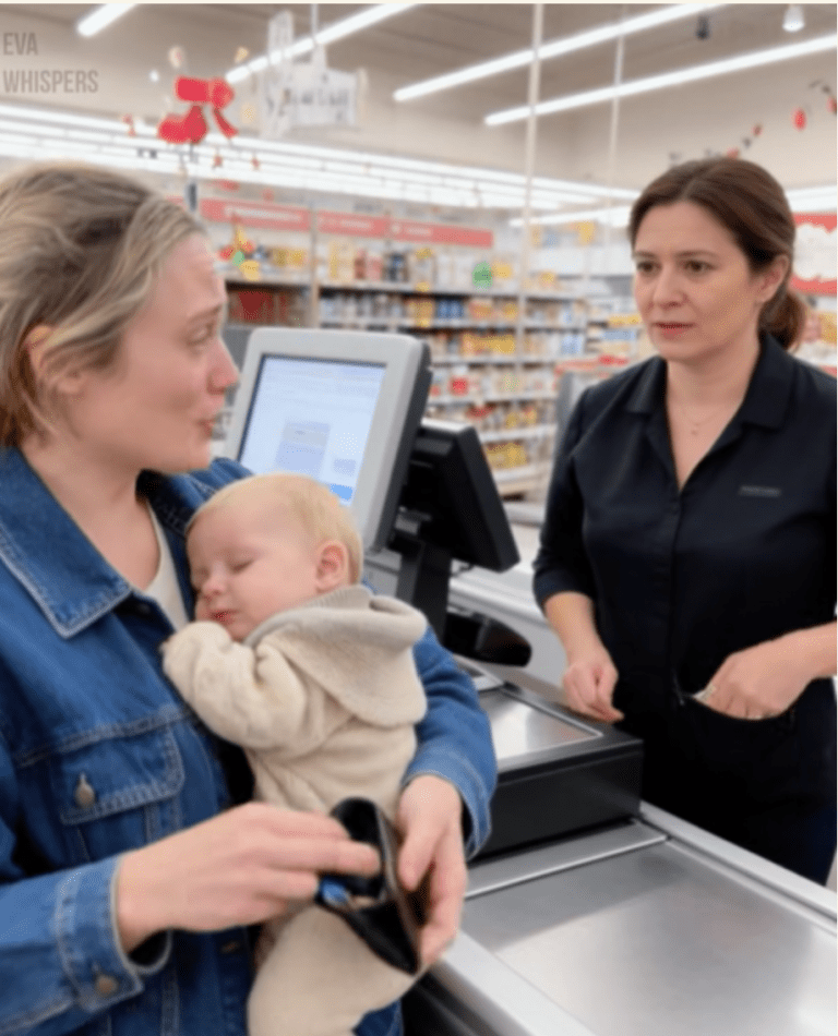 A kosara szinte üres volt: néhány alapvető élelmiszer – egy vekni kenyér, pár tojás, egy doboz tej – és egy kis csomag babaétel. Minden jel arra utalt, hogy ezek a vásárlások mindössze néhány napra elegendőek lehetnek.Amikor elkezdte számolni a pénzét, halk, reszkető suttogás hagyta el a száját: