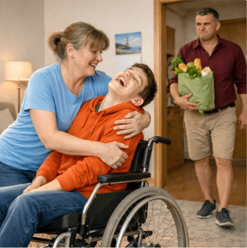 és Alexejt a tolószék felett tartotta, mintha könnyű toll volna. Körbe forgatta őt, miközben a lábával a rádió ritmusára koppintott, és a fiú nevetése, akár egy víztömeg, betöltötte a szobát. Alexej hátra dobta a fejét, karjait szélesen kitárta, teljesen elveszve az örömben.