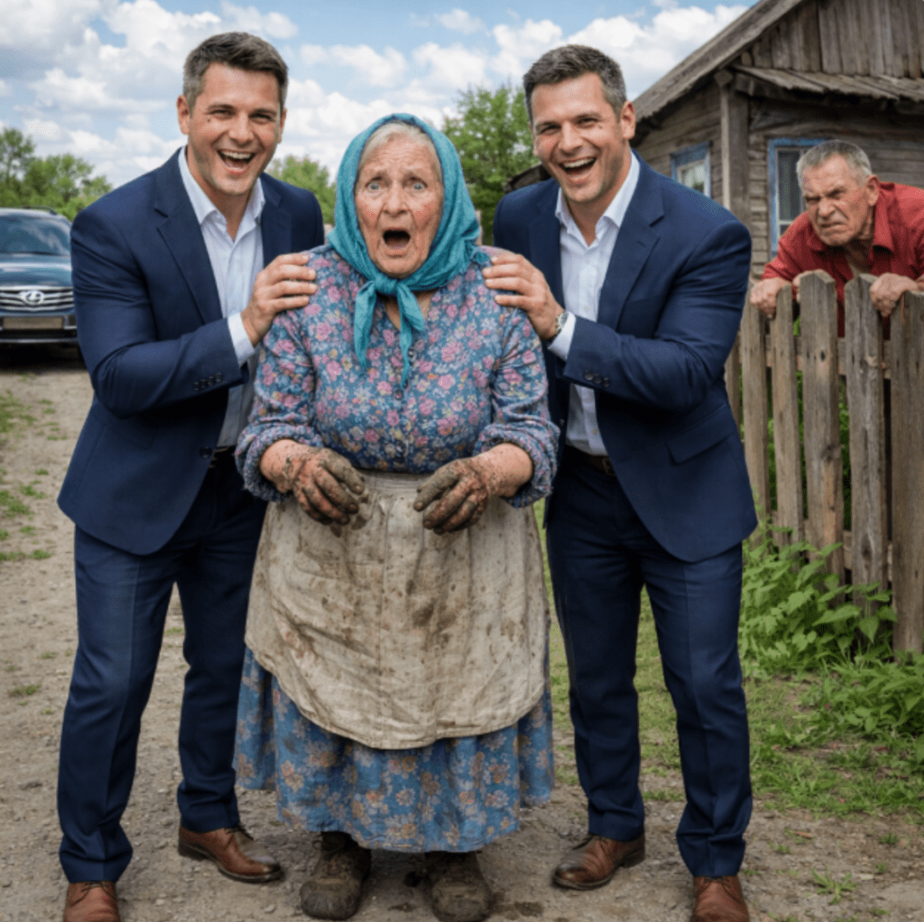 A kocsik megálltak a kapuja előtt. Két férfi szállt ki tökéletes öltönyben — magasak, egymás tükörképei, anyajegy a bal szem alatt. Antonina megdermedt. A lapát kicsúszott a kezéből.— Tonja néni?A hang remegett. Azonnal felismerte a szemekről.