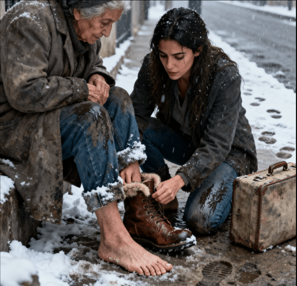 Közvetlenül a jégre támaszkodtak, mintha már nem is emberi testhez tartoztak volna.Lenéztem a saját csizmámra. Téli. Meleg. Masszív. Aztán a bőröndömre. Ruhák voltak benne — cipő nem. Nem gondolkodtam. Az eszem sikított, hogy meg fogok fagyni. Az emberségem azonban hangosabban üvöltött.