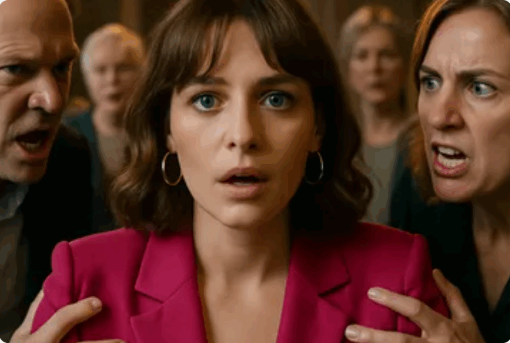 A levegőben döbbenet suhogott végig.Eva a dobogóhoz lépett, ugyanahhoz, ahol apja újévi beszédeit tartotta. Nem készült beszéddel, mégis amikor megszólalt, hangja határozott, tiszta és megdönthetetlen volt: