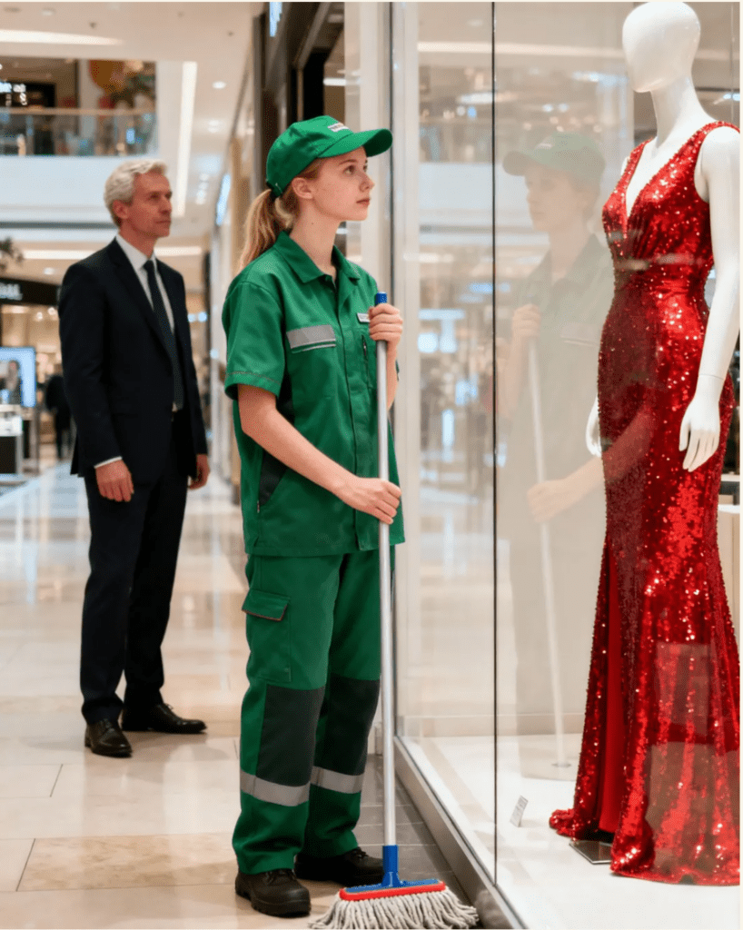Pár bankjegyet húzott elő a pénztárcájából, és gondatlanul a földre ejtette mellettük.„Az olyan emberek,” mondta, „akik egész életükben takarítanak, még egy gombot sem engedhetnek meg ebből a ruhából.”Maria felvette a bankókat, de válasza nem jött azonnal. Tekintetét újra a ruhára szegezte – nyugodt, higgadt, rendíthetetlen.