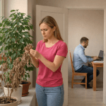 Másnap visszatértem, és láttam őt az ablakon keresztül: Eric, a kanapén terpeszkedve, sörrel a kezében, önelégült mosollyal. Megan mereven ült szemben vele, a bűntudat felvillanó jeleivel az arcán. Egyszer kopogtam. Beléptem.