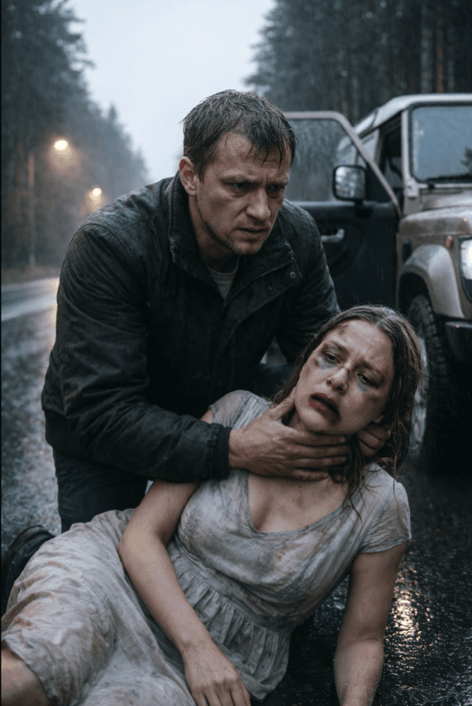 Egy sokgyermekes apa egy kihalt országúton megállt, hogy segítsen egy megvert nőnek — és még csak elképzelni sem tudta, hogy ez a pillanat örökre megváltoztatja az életét 😲😱Aznap este szakadó eső verte az utat. A vízfüggöny szinte teljesen elmosta a látást, a fényszórók sárgás fénye is alig tört át a sötétségen.