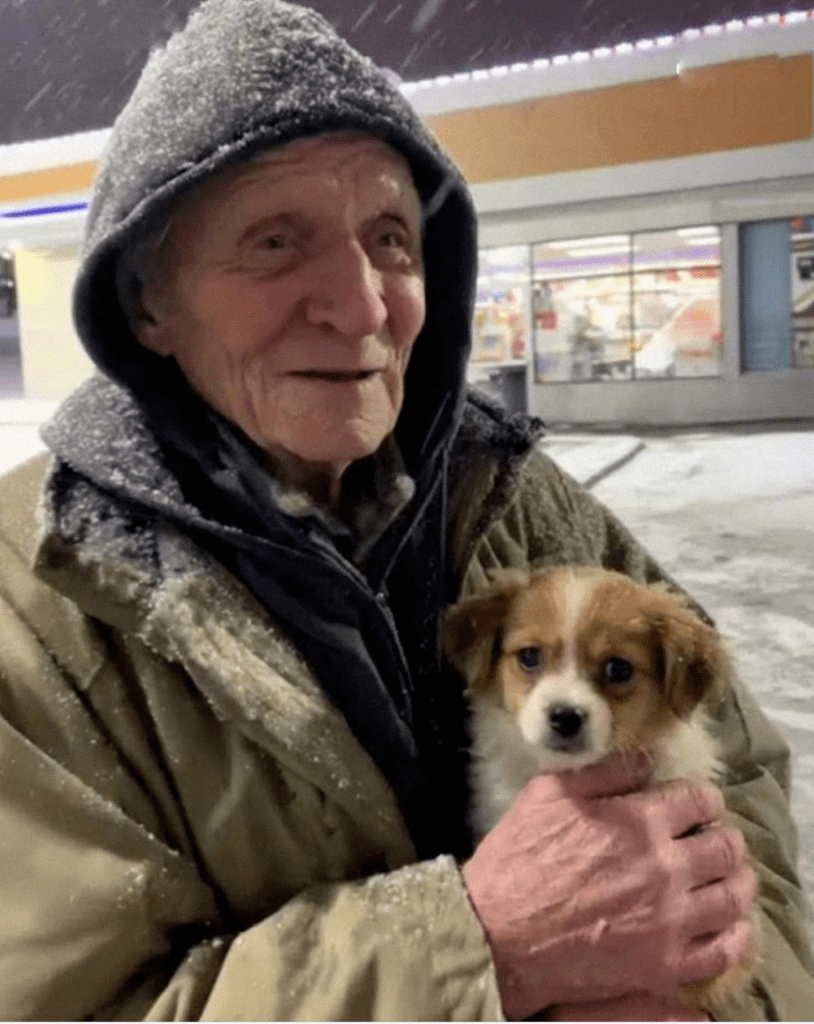 Mi addig bemegyünk a boltba.Vettünk forró levest, vizet, kenyeret – és kutyaeledelt. Végül egy új családtag érkezett. Amikor visszamentünk, átadtam neki a táskát.– Kérem, vegye legalább ezt.