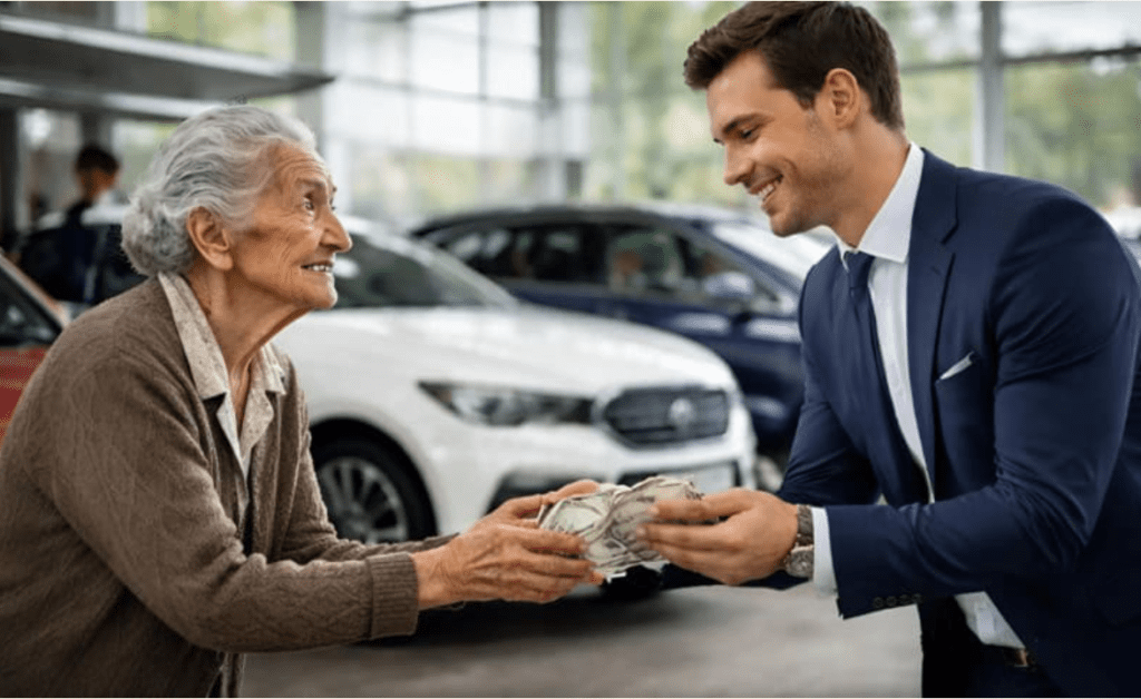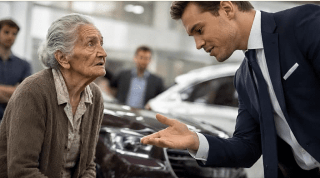 „Meg szeretném vásárolni ezt az autót” — mondta halkan az idős asszony.A szalonban mintha egy pillanatra megállt volna a levegő.Az ajtó mögötte lassan becsukódott, és a külvilág zajai — autók zúgása, távoli beszélgetések — hirtelen elhalkultak. Bent csak a csend, a fény és a luxus maradt.