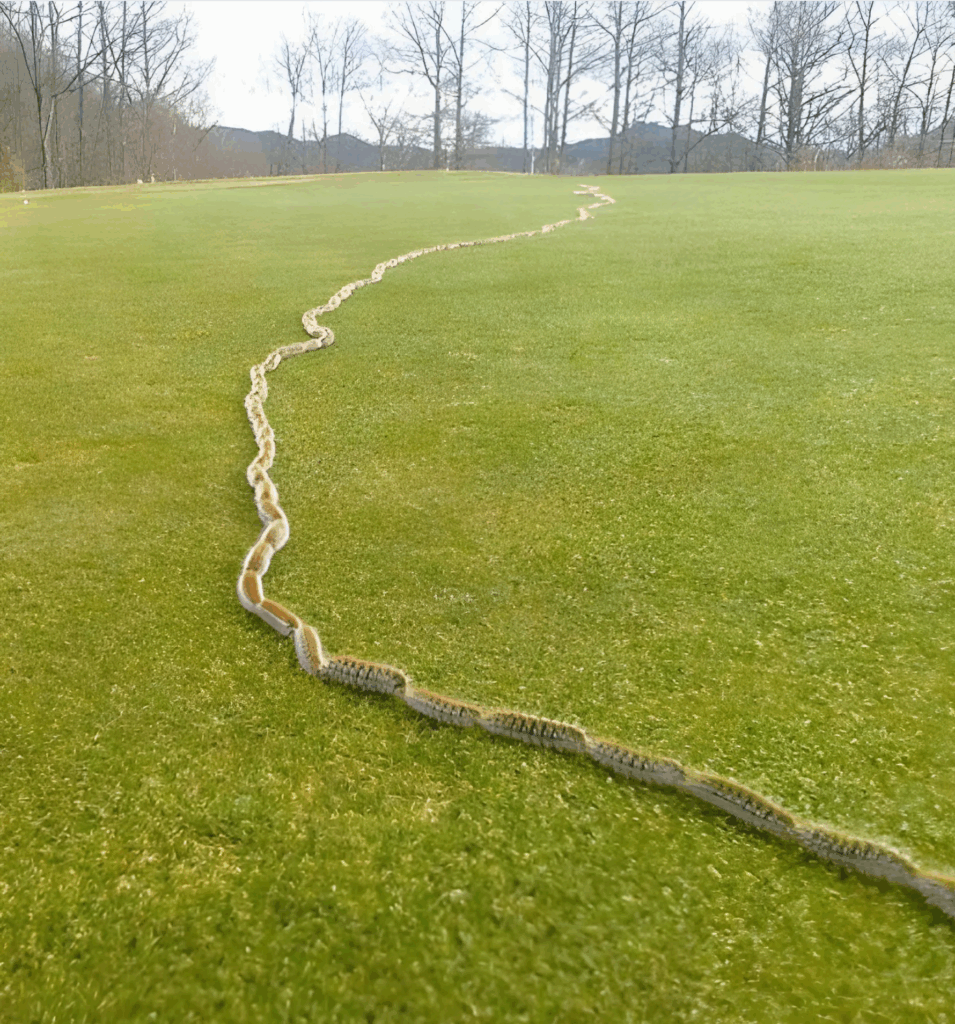 Nem kötél volt. De nem is kígyó. Egy mozgó hernyósor kúszott előttem – legalább 150 apró hernyó, egymás után sorban, szorosan egymáshoz tapadva, mintha egy láthatatlan vezért követnének.